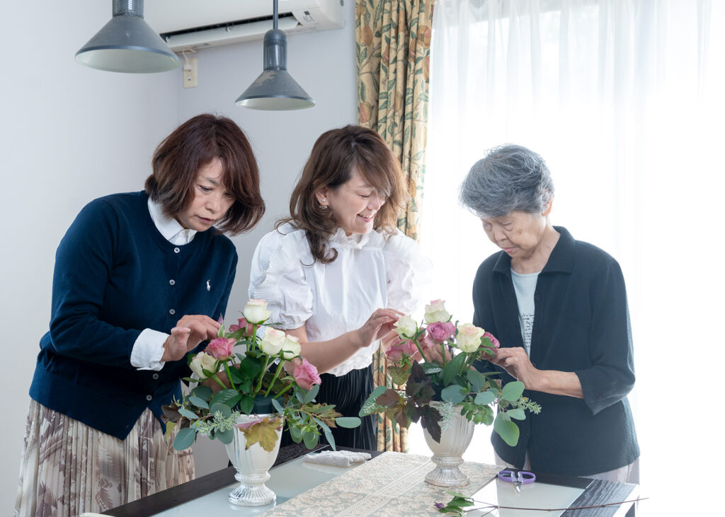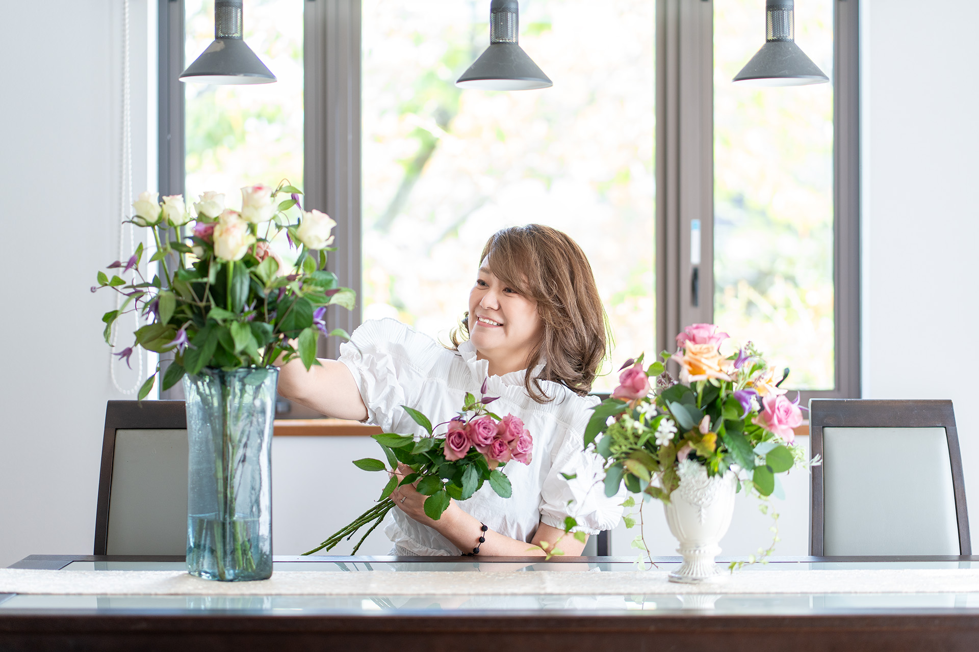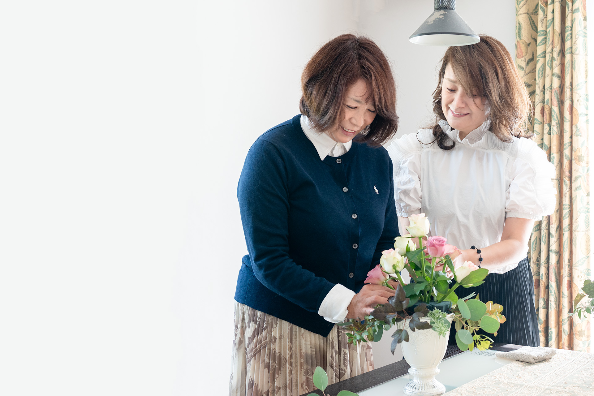 フラワーワークスジャパン認定講師として、英国の伝統に基づいたエレガントで気品あるデザインを、基礎から丁寧にご指導いたします。少人数制で落ち着いたプライベート空間の中、じっくりと学んでいただけます。