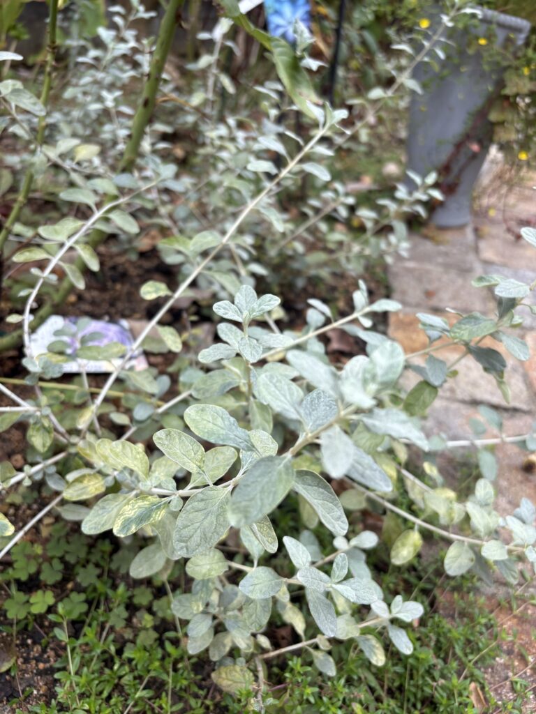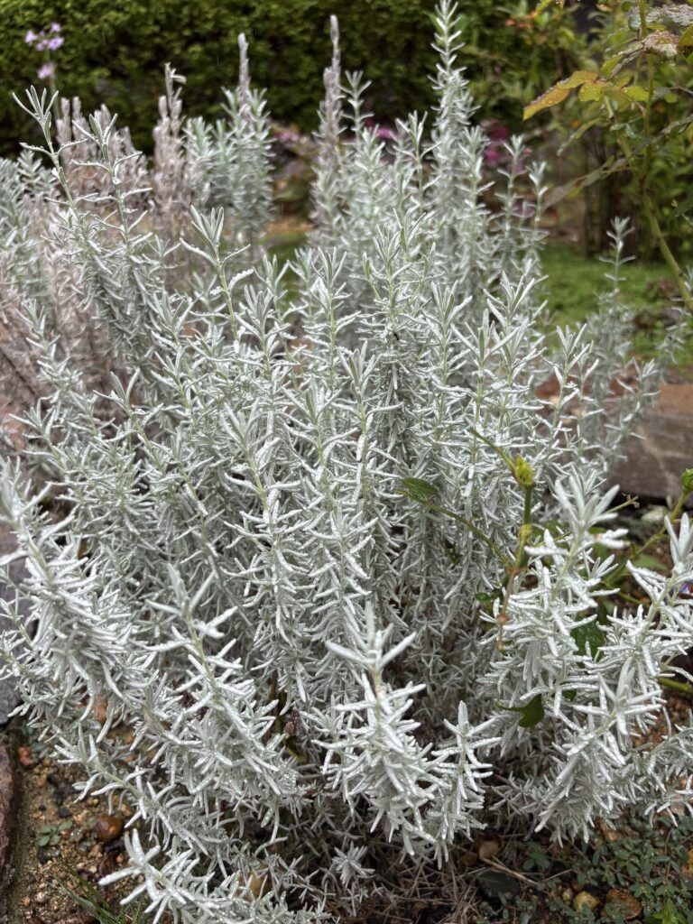銀葉が陽光を受けて輝き、上品な印象を与えるハーブ。